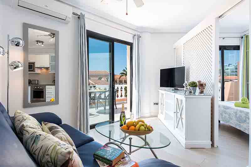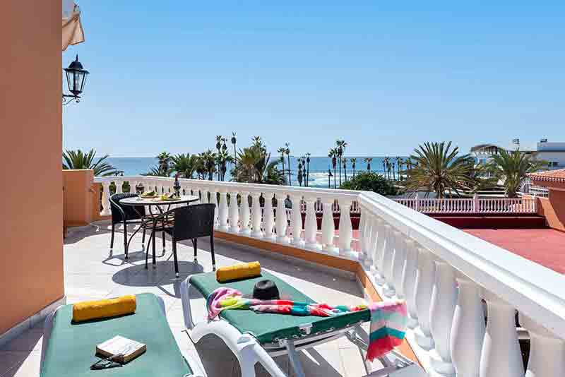 Our holiday apartments are located on the beach front line in between Los Cristianos and Playa de Las Americas, close to some of the 5 Star Hotels such as : Mediterranean Palace, Mare Nostrum Resort and Sir Anthony..